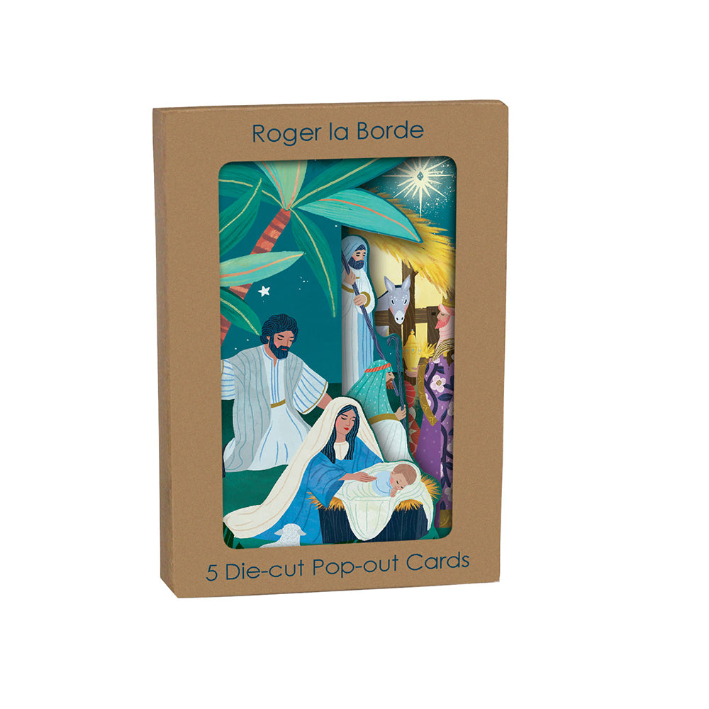 Away in a Manger Tri fold Christmas Card 5 pack 90 x 140 mm with envelopes Roger la Borde