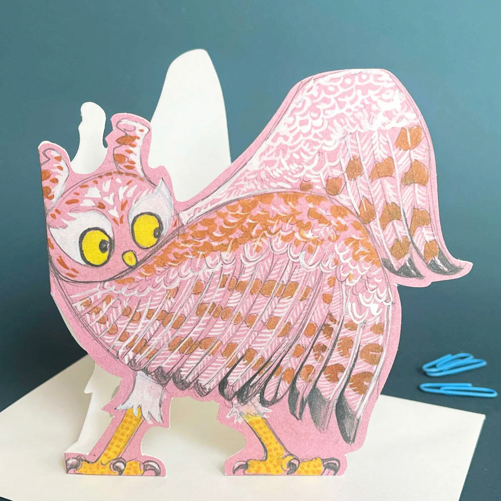 Dancing Owl Die Cut Greetings Card Daniel Mackie - 5 x 5 inches with envelope