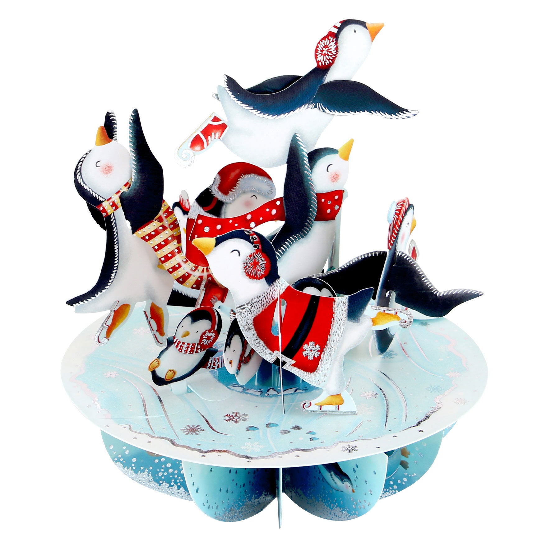 Ice-Skating Penguins - 3D Pop Up Pirouettes Christmas Card 14 x 17 x 14cm