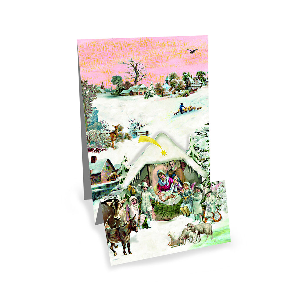 Nativity Christmas Panorama Advent Card with 24 doors and envelope 16.5 x 11.5 cm
