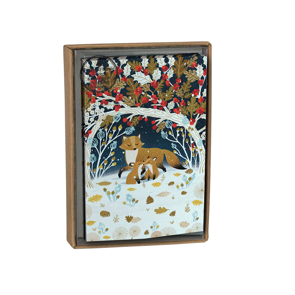 Paw Prints in the Snow Foxes Small plain Christmas cards in craft box 8 cards plus envelopes Roger la Borde