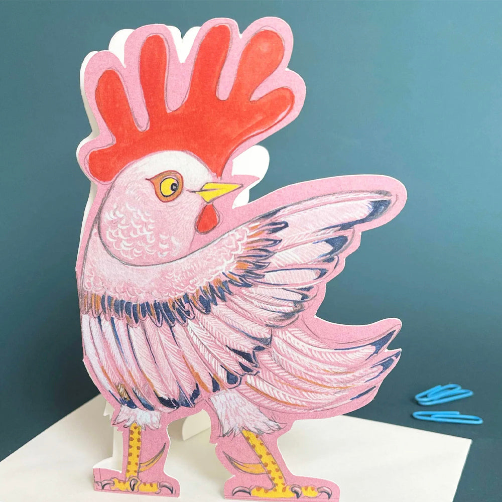 Pointing Rooster Die Cut Greetings Card Daniel Mackie - 5 x 5 inches with envelope