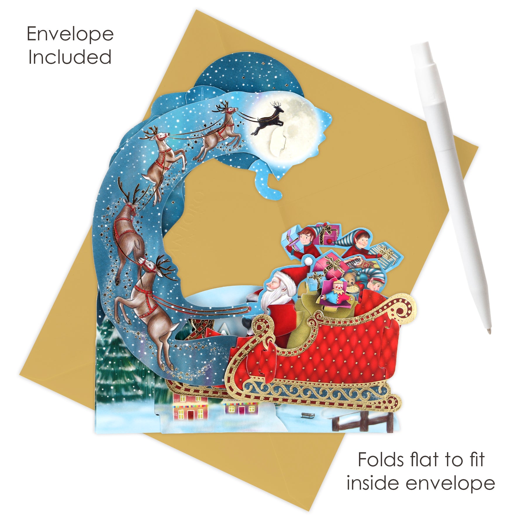 Santa's Sleigh Pendulum 3 D Pop Up Christmas Card Decoration 37 x 21 x 17cm Santoro