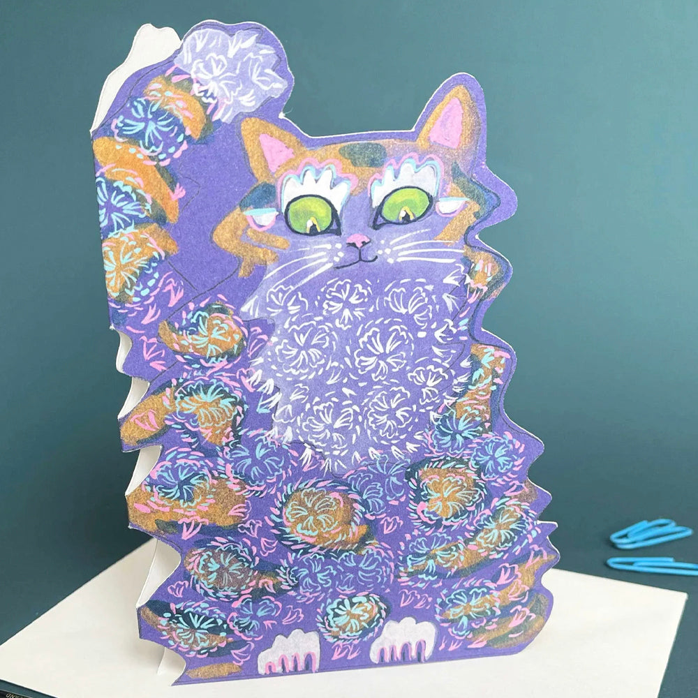 Scruffy Cat Die Cut Greetings Card Daniel Mackie - 5 x 5 inches with envelope