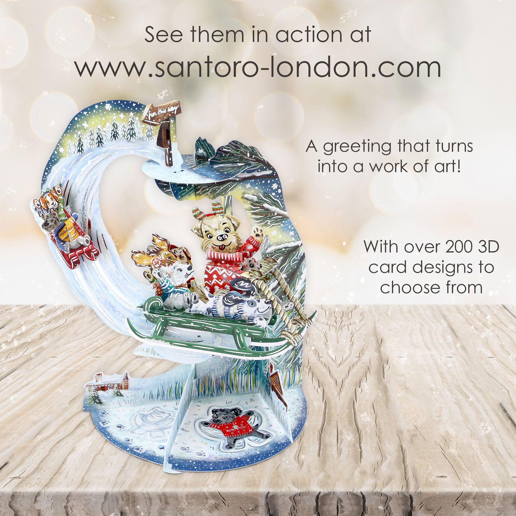 Sledging Puppies Pendulum 3 D Pop Up Christmas Card Decoration 39 x 21 x 17cm Santoro