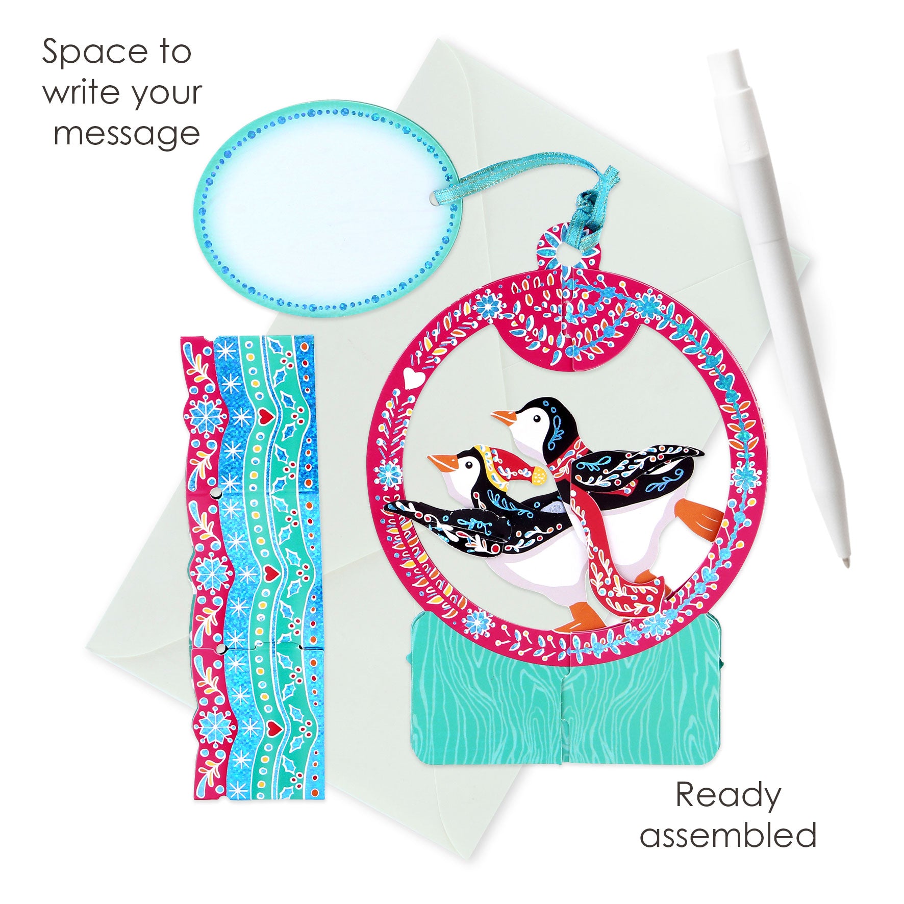 Snow Globe Penguins 17 x 15 x 4cm - Baubles 3D Pop Up Christmas Card Ornament Santoro