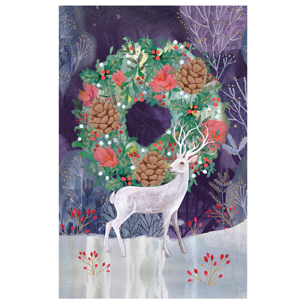 Stag and Wreath Small plain Christmas cards in craft box 8 cards plus envelopes Roger la Borde 160 x 90 mm